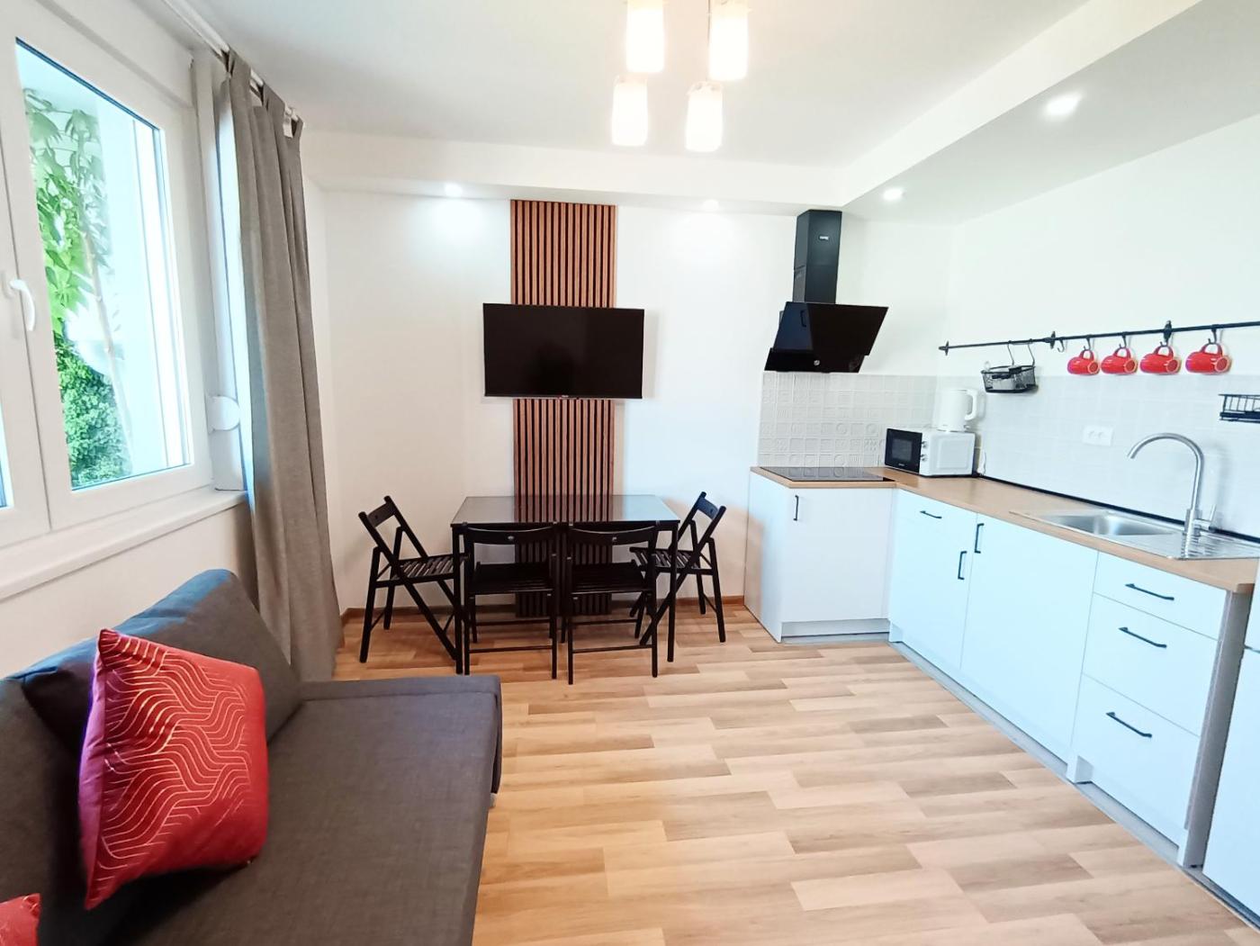 One-Bedroom Apartment. This apartment features 1 living room, 1 separate bedroom and 1 bathroom with a shower and free toiletries. In the kitchen, guests will find a stovetop, a refrigerator, a microwave and an electric kettle. The air-conditioned apartment features a flat-screen TV, a washing machine, a seating area, a wardrobe as well as garden views. The unit has 2 beds.