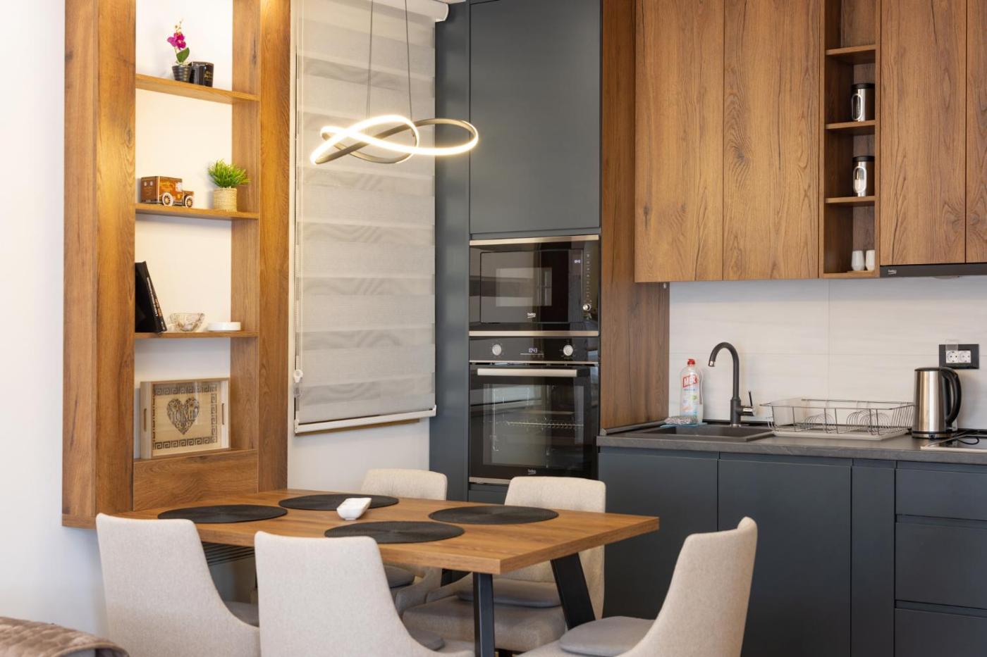 One-Bedroom Apartment. This apartment comes with 1 living room, 1 separate bedroom and 1 bathroom with a shower and a hairdryer. In the kitchen, guests will find a stovetop, a refrigerator, kitchenware and an oven. Boasting a balcony with mountain views, this apartment also features a tea and coffee maker and a flat-screen TV with cable channels. The unit has 2 beds.