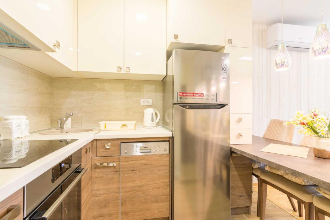 One-Bedroom Apartment. The fireplace is the standout feature of this apartment. Guests can make meals in the kitchen that features a stovetop, a refrigerator, a dishwasher and kitchenware. The air-conditioned apartment features a flat-screen TV, a washing machine, a wardrobe, an electric kettle as well as city views. The unit has 3 beds.