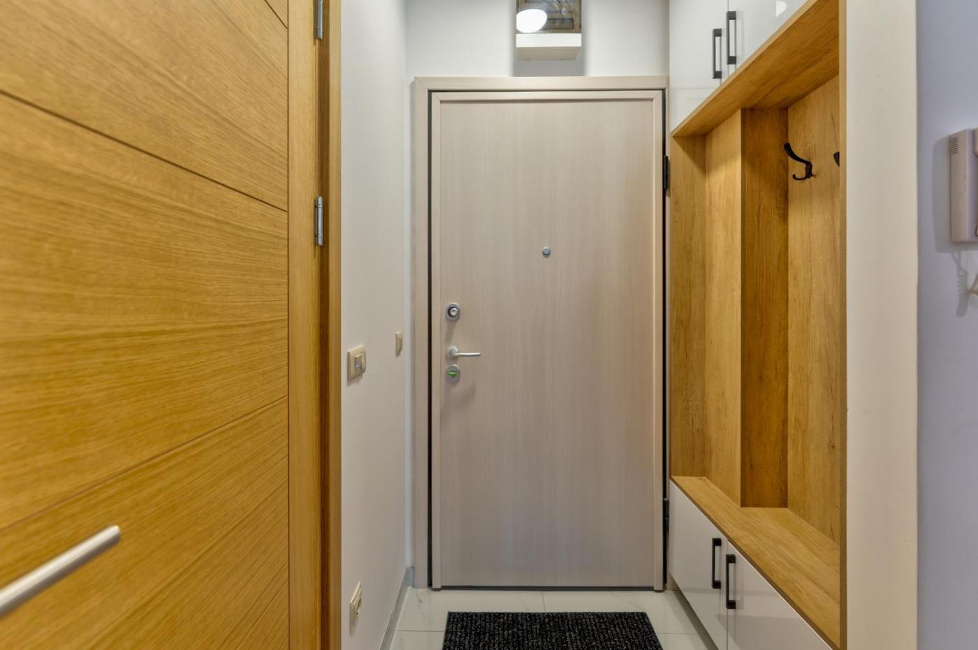 One-Bedroom Apartment. Featuring a private entrance, this apartment comprises 1 living room, 1 separate bedroom and 1 bathroom with a bath or a shower and a hairdryer. The well-fitted kitchen features a stovetop, a refrigerator, kitchenware and an oven. Boasting a terrace with lake views, this apartment also provides soundproof walls and a flat-screen TV with cable channels. The unit offers 2 beds.