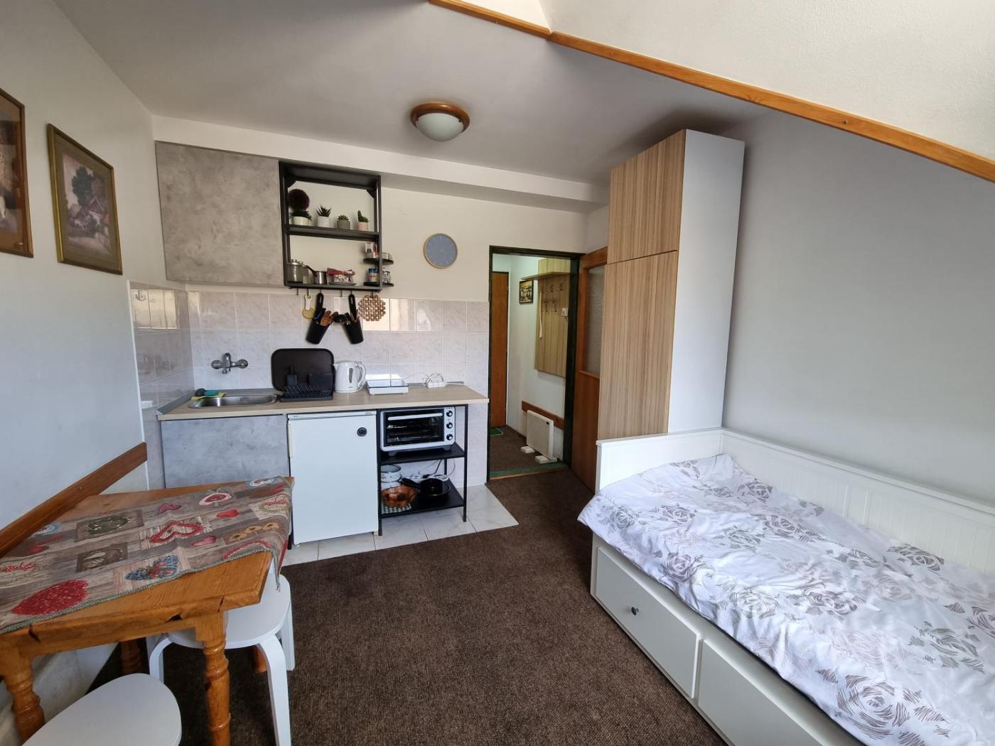 Studio. The studio offers a seating area, a wardrobe, as well as a private bathroom boasting a bath and a shower. Meals can be prepared in the well-fitted kitchen, which features a refrigerator, kitchenware and an oven. The studio features a flat-screen TV with satellite channels, a private entrance, soundproof walls, a tea and coffee maker as well as mountain views. The unit has 2 beds. ;